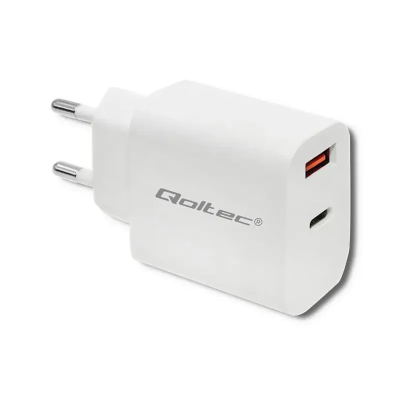 Ładowarka sieciowa Qoltec 18W | 5-12V | 1.5-3A | USB typ C PD | USB QC 3.0 to ładowarka. Zapewnia szybkie i bezpieczne ładowanie urządzeń mobilnych.