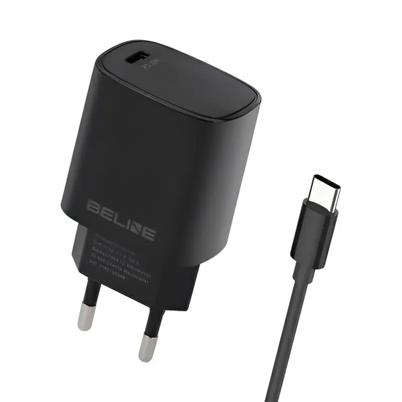Ładowarka sieciowa Beline 20W 1xUSB-C PD 3.0+kabel USB-C - czarna to ładowarka o długości 1.00 m. Zapewnia szybkie i bezpieczne ładowanie urządzeń mobilnych.