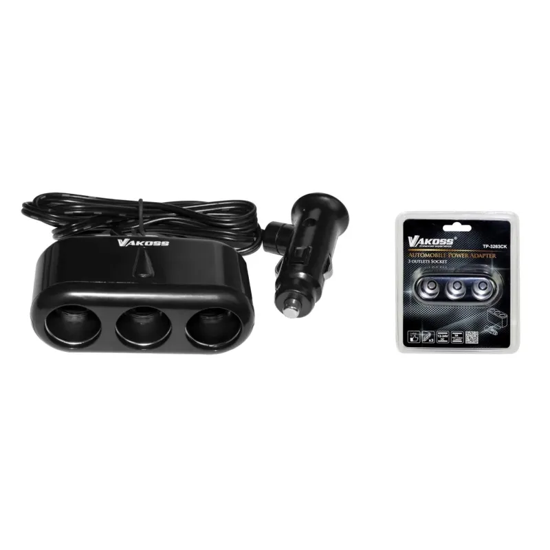 Rozgałęziacz gniazda zapalniczki VAKOSS TP-3263CK 3 gniazda, 3A, czarny to ładowarka o długości 1.00 m. Zapewnia szybkie i bezpieczne ładowanie urządzeń mobilnych.