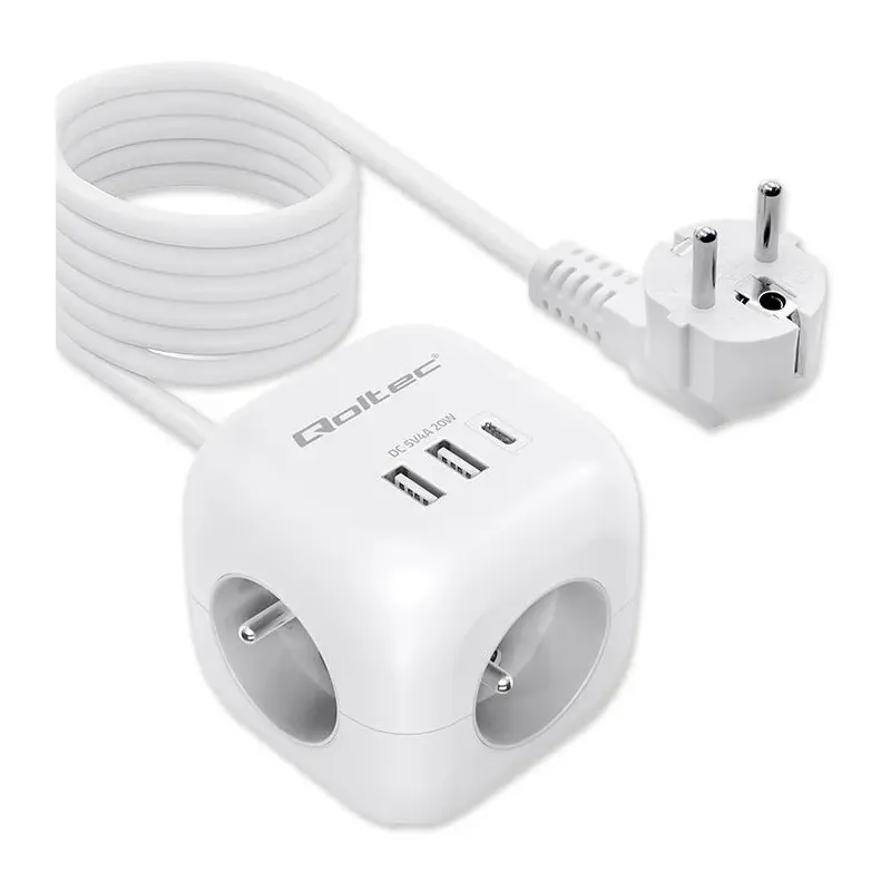 Kostka zasilająca Qoltec przedłużacz 6w1 z podświetlanym włącznikiem | 3x