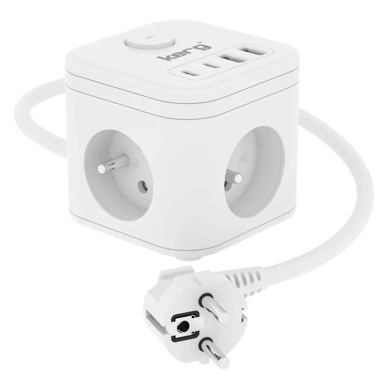 Kostka zasilająca KERG 3-gniazdowa + ładowarka USB-A+USB-C 1,5m 3×1,5mm2 to listwa zasilająca o długości 1.50 m. Umożliwia podłączenie wielu urządzeń do jednego gniazdka z ochroną przepięciową.