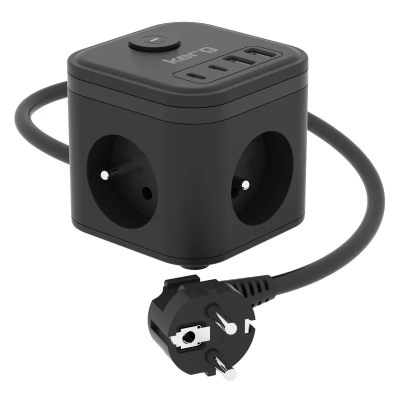 Kostka zasilająca KERG 3-gniazdowa + ładowarka USB-A+USB-C 1,5m 3×1,5mm2 to listwa zasilająca o długości 1.50 m. Umożliwia podłączenie wielu urządzeń do jednego gniazdka z ochroną przepięciową.