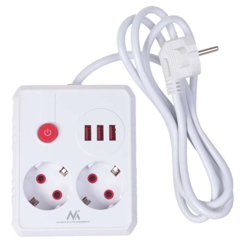 Listwa zasilająca Maclean MCE387 W, przedłużacz 2 gniazda + 3xUSB, 110-240V