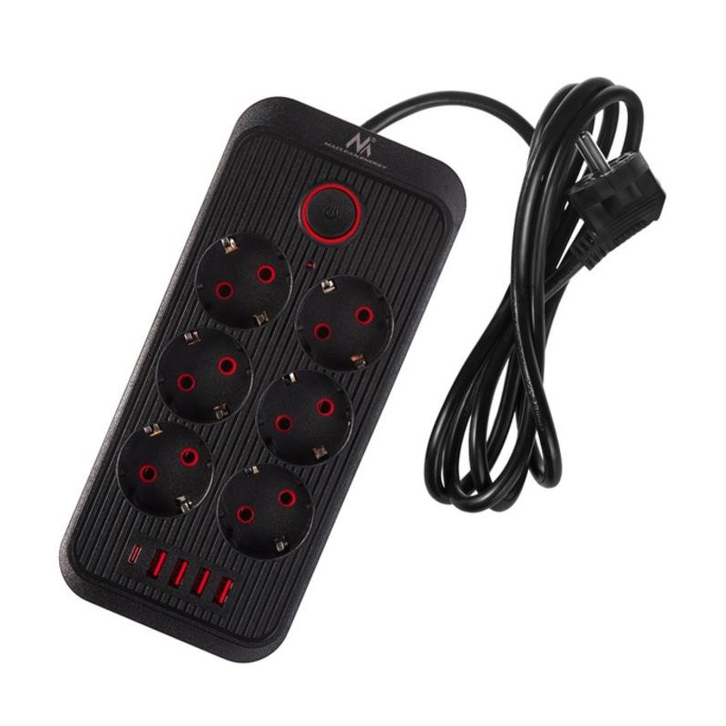Listwa zasilająca Maclean MCE389 B, przedłużacz 6 gniazd + 4xUSB + USB-C,