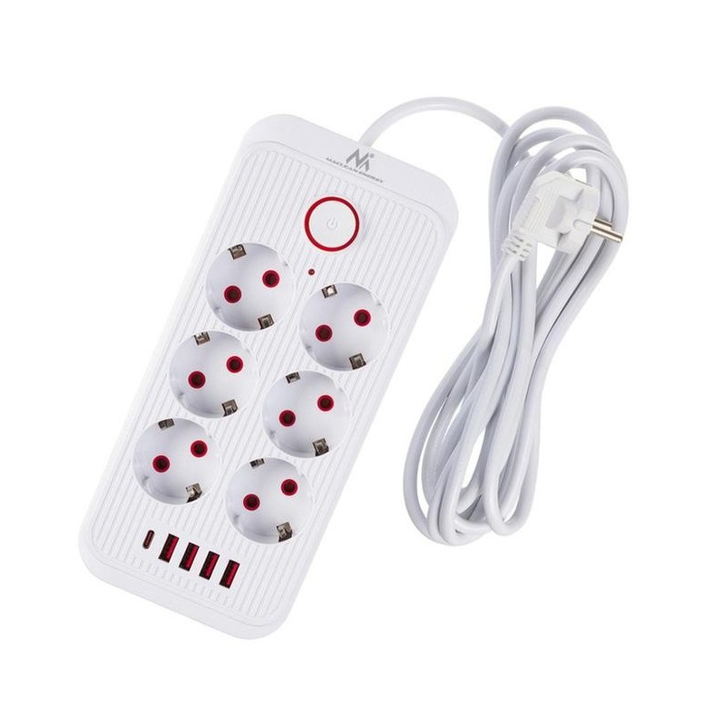 Listwa zasilająca Maclean MCE391 W, przedłużacz 6 gniazd + 4xUSB + USB-C,