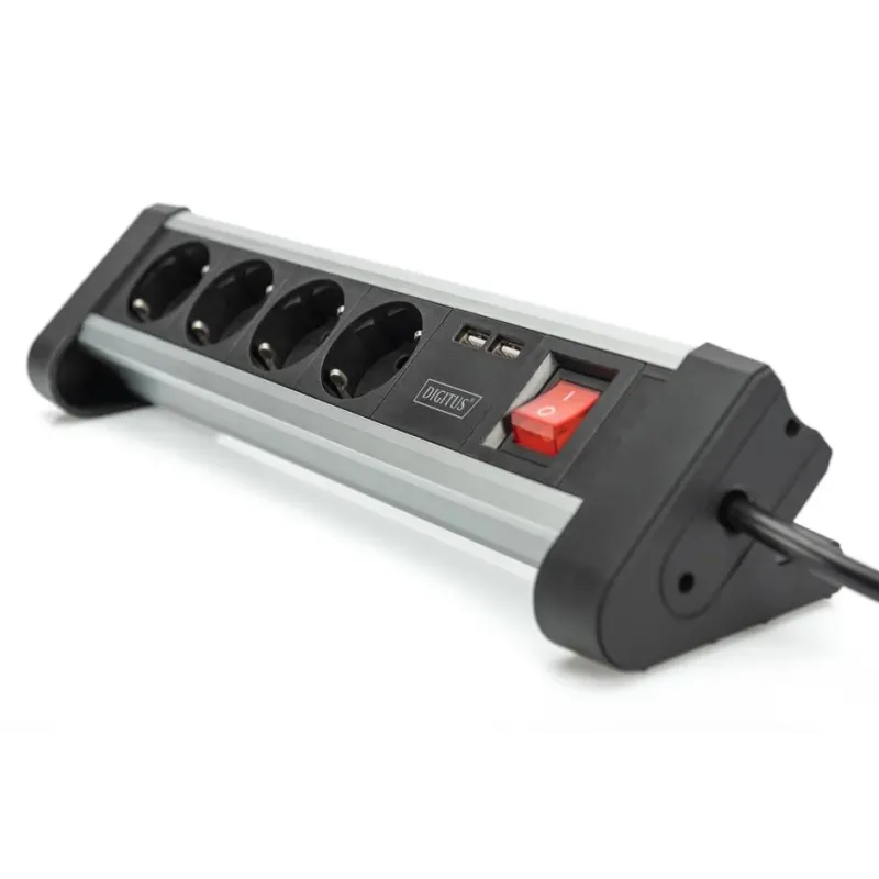 Listwa zasilająca DIGITUS biurowa 45° 4 gniazdowa 2xUSB (5V/2A) obrót 290° to listwa zasilająca o długości 1.50 m. Umożliwia podłączenie wielu urządzeń do jednego gniazdka z ochroną przepięciową.