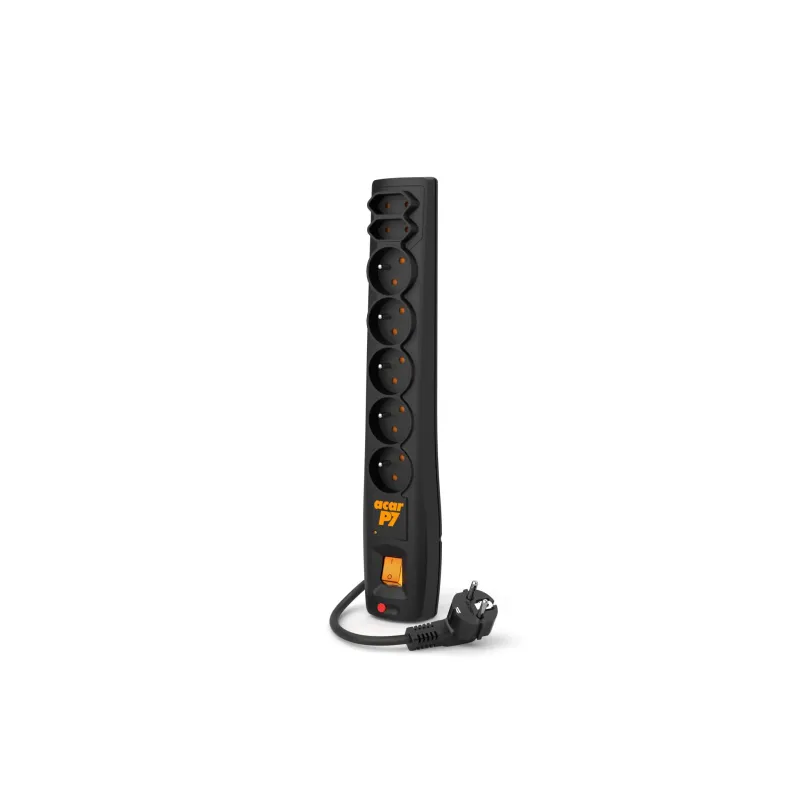 Listwa przeciwprzepięciowa Acar P7 1,5m 7 gniazd automat czarna to listwa zasilająca o długości 1.80 m. Umożliwia podłączenie wielu urządzeń do jednego gniazdka z ochroną przepięciową.