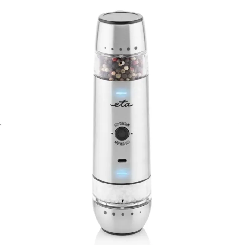 Młynek do pieprzu i soli Eta MolinoDuo 192890000 Młynek do pieprzu i soli Eta MolinoDuo 192890000 to produkt. 22.5 Długość całkowita (cm) 6.0 Średnica (cm) 3.7V, litowy, 400 mAh Zasilanie Kluczowe cechy.