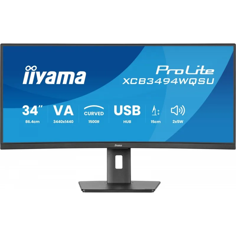 IIYAMA Monitor 34 cali XCB3494WQSU-B1 IIYAMA Monitor 34 cali XCB3494WQSU-B1 to monitor z matrycą VA. Zapewnia komfortową pracę i rozrywkę dzięki wysokiej jakości obrazu. VA Typ matrycy 3440 x 1440 Rozdzielczość.