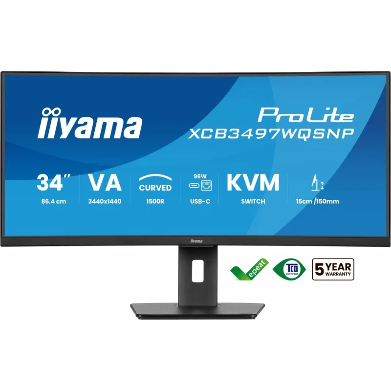 IIYAMA Monitor 34 cali XCB3497WQSNP-B1 VA,UWQHD,1500R,USB-cDock,KVM,95W,