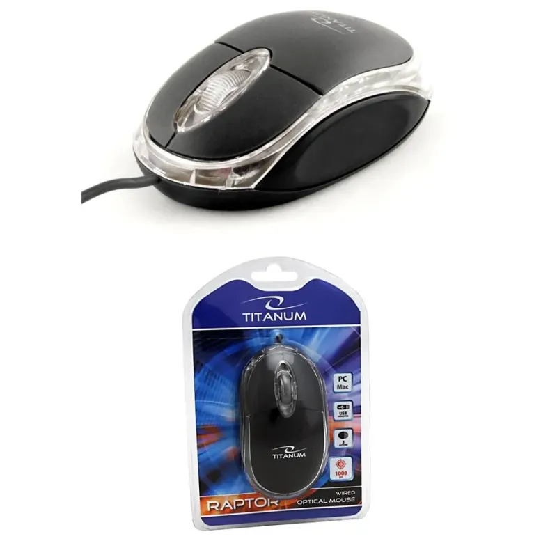 Mysz przewodowa Titanum 3D RAPTOR TM102K optyczna czarno-przezroczysta to mysz komputerowa z podłączeniem przewodowym. Zapewnia precyzyjne sterowanie kursorem w codziennej pracy i rozrywce.