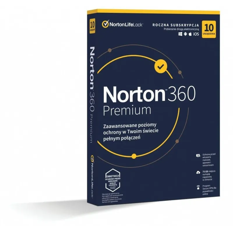 Oprogramowanie NORTON 360 Premium 75GB PL 1 użytkownik, 10 urządzeń, 1 rok