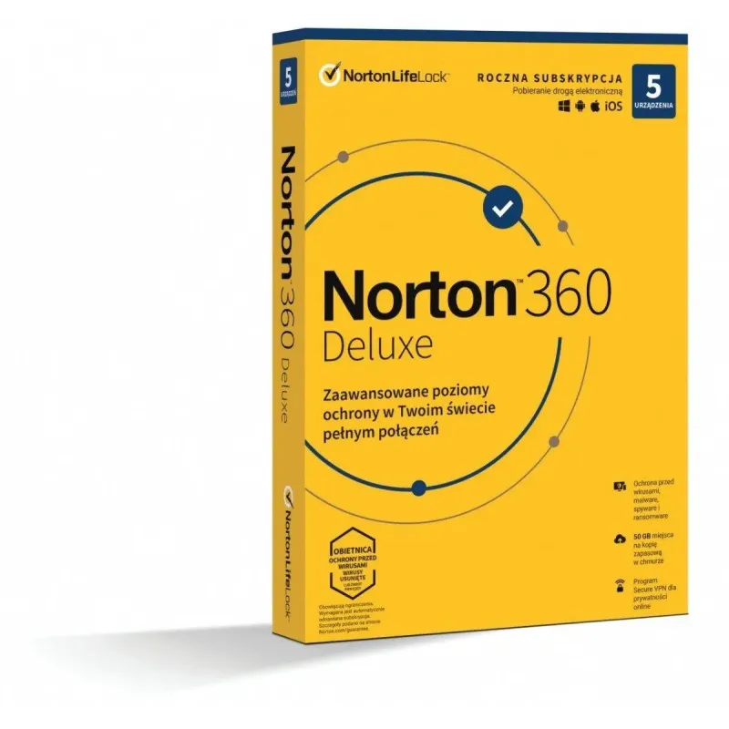 Oprogramowanie NORTON 360 Deluxe 50GB PL 1 użytkownik, 5 urządzeń, 1 rok