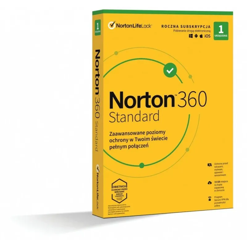 Oprogramowanie NORTON 360 STANDARD 10GB PL 1 użytkownik, 1 urządzenie, 1