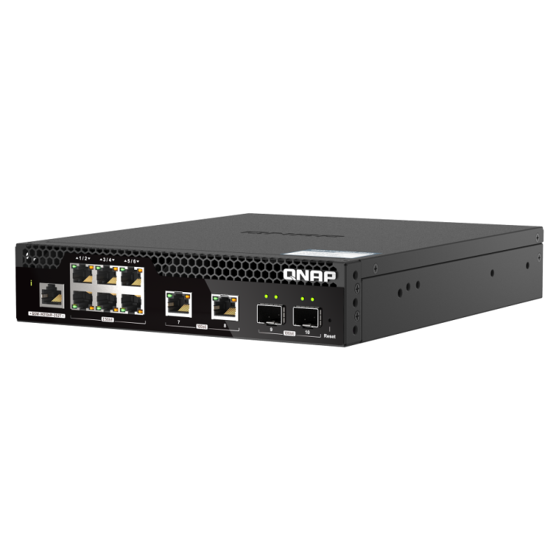 Model QSW-M2106R-2S2T to przełącznik warstwy drugiej zarządzany przez sieć, wyposażony w dwa porty światłowodowe 10GbE SFP+, dwa porty 10GbE RJ45 i sześć portów 2,5GbE RJ45. Model QSW-M2106R-2S2T, obsługuje przełączanie w warstwie drugiej i zarządzanie siecią za pomocą przyjaznego w obsłudze interfejsu WWW, oferuje łatwe wdrażanie w hybrydowych środowiskach sieciowych wysokiej szybkości i stanowi podstawowe rozwiązanie do zarządzania siecią. Dzięki dwukrotnie węższej konstrukcji RACK typu 1U można zamontować dwa modele QSW-M2106R-2S2T, co zapewnia oszczędność miejsca.