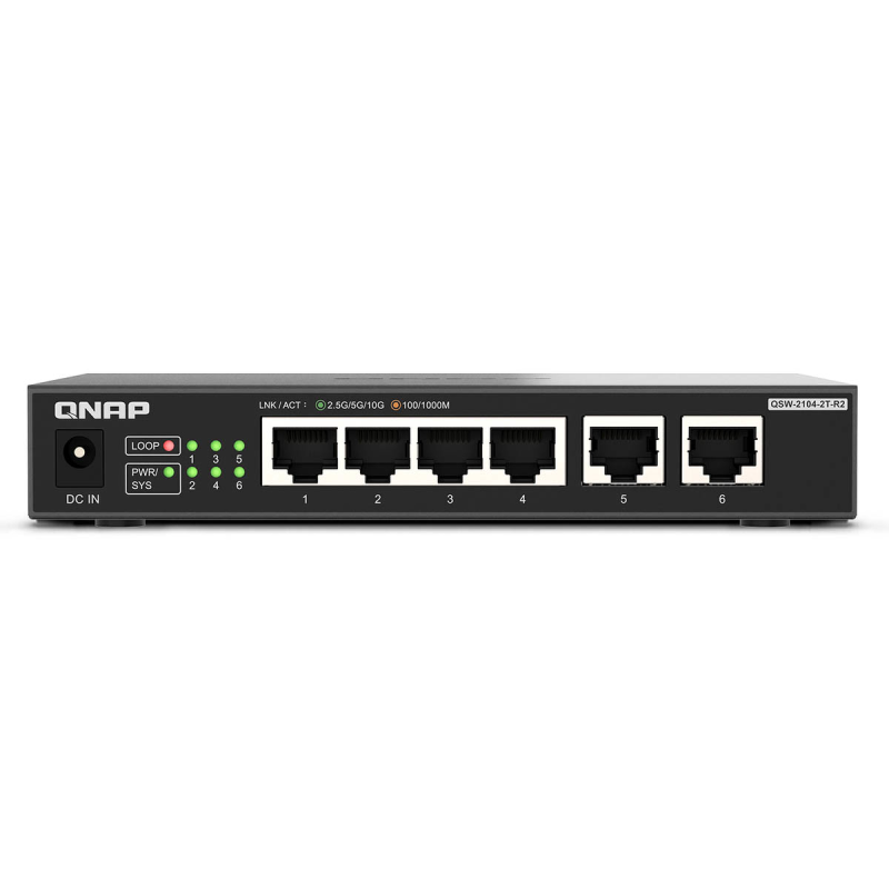 QNAP QSW-2104-2T-R2 | Kompaktowy niezarządzany przełącznik 6 portowy, 4x 2,5GbE 2x 10GbE Base-T