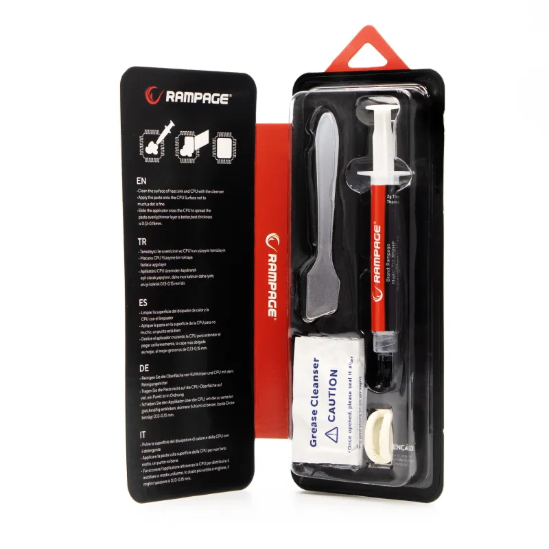 Rampage TM-502HP 2g to pasta termoprzewodząca. Poprawia przewodzenie ciepła między procesorem a radiatorem.