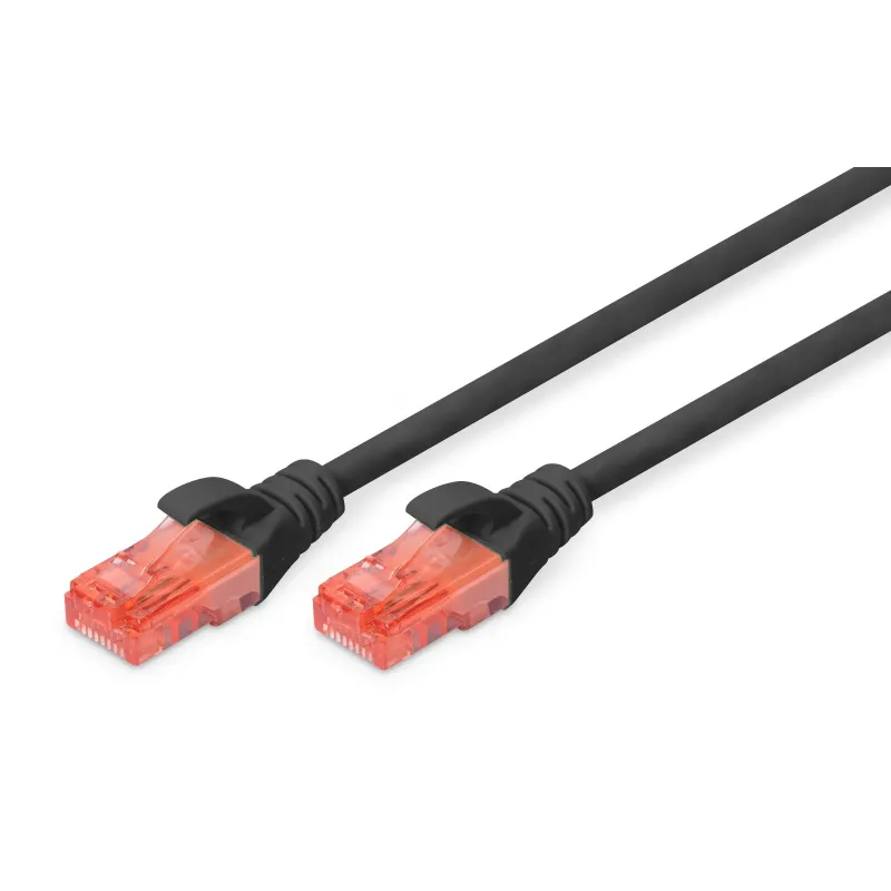 Patchcord DIGITUS UTP kat. 6 5m PVC czarny to patchcord sieciowy kategorii 6. Zapewnia niezawodne połączenie przewodowe między urządzeniami sieciowymi.
