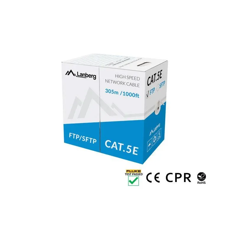 Kabel SFTP Lanberg kat. 5e 305m drut CU szary CPR+ fluke passed