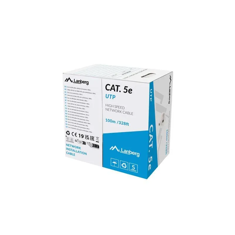 Kabel LAN Lanberg UTP Kat.5e 100m drut CU szary Fluke passed