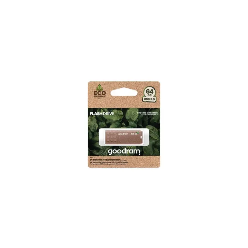 Pendrive GOODRAM UME3 ECO FRIENDLY 64GB USB 3.2 Gen 1 to pendrive o pojemności 64 GB, o taktowaniu nie dotyczy. Umożliwia szybkie przenoszenie plików między urządzeniami.