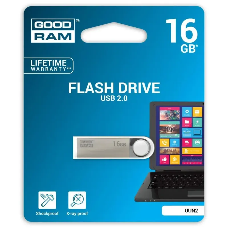 Pendrive GOODRAM 16GB UUN2 USB 2.0 Silver to pendrive o pojemności 16 GB, o taktowaniu nie dotyczy. Umożliwia szybkie przenoszenie plików między urządzeniami.