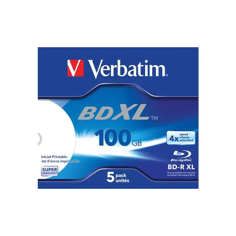 Płyty BD-R Verbatim XL 100GB X4 Wide inkjet printable (5 Jewel Case)