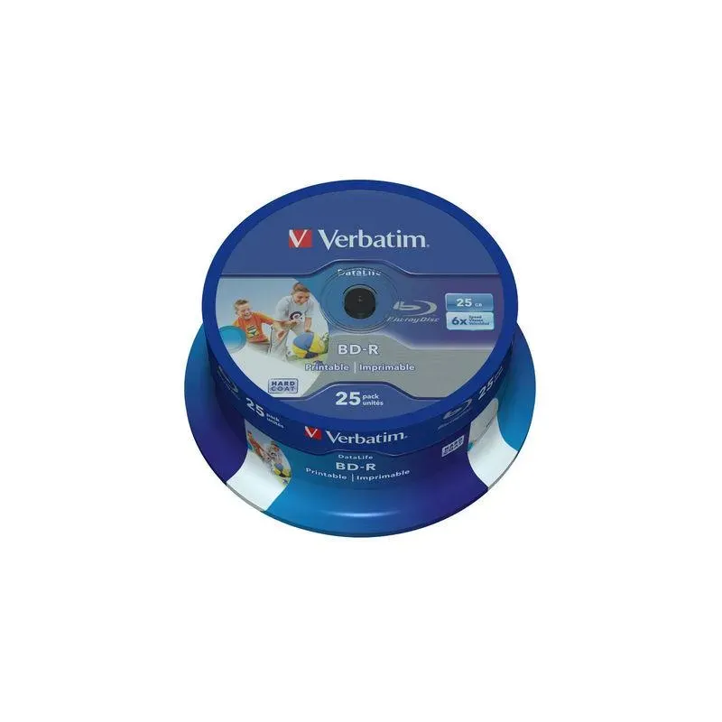 Płyty BD-R SL Datalife 25GB* 6x Wide Inkjet Printable (cake 25) to płyta Blu-Ray marki Verbatim. Oferuje dużą pojemność do archiwizacji danych i nagrywania filmów HD.