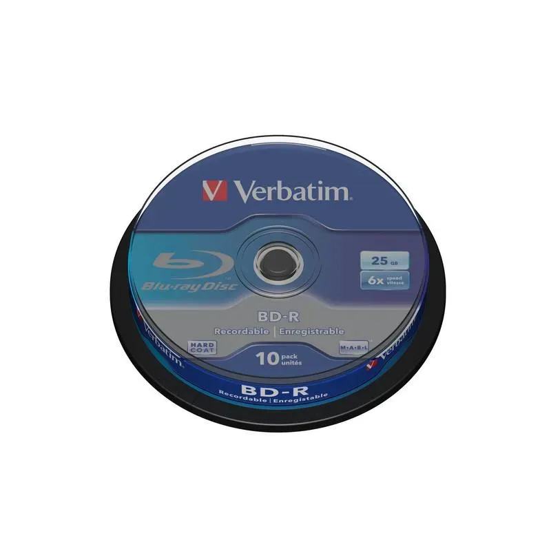 Płyty BD-R Verbatim 25GB X6 (Cake 10) to płyta Blu-Ray. Oferuje dużą pojemność do archiwizacji danych i nagrywania filmów HD.
