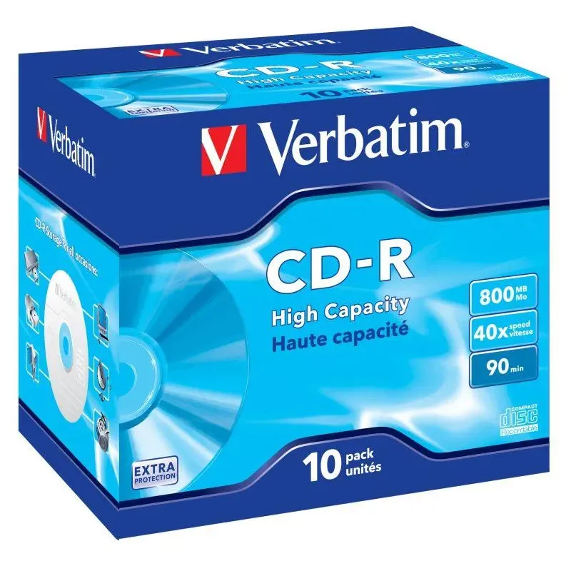Płyty CD-R Verbatim 40x 800MB (Jewel Case 10) EXTRA PROTECTION to płyta CD-R. Umożliwia nagrywanie muzyki, danych i kopii zapasowych.