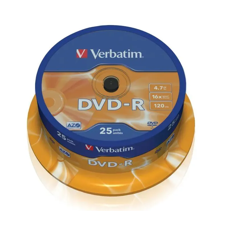 Płyty DVD-R Verbatim 16x 4.7GB (Cake 25) MATT SILVER to płyta DVD. Umożliwia archiwizację danych, tworzenie kopii zapasowych i nagrywanie multimediów.