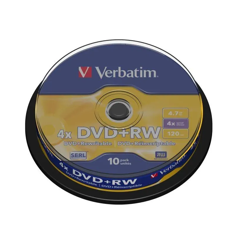 Płyty DVD+RW Verbatim 4x 4.7GB Matt Silver (cake 10) to płyta DVD-RW. Umożliwia wielokrotne nagrywanie i kasowanie danych.