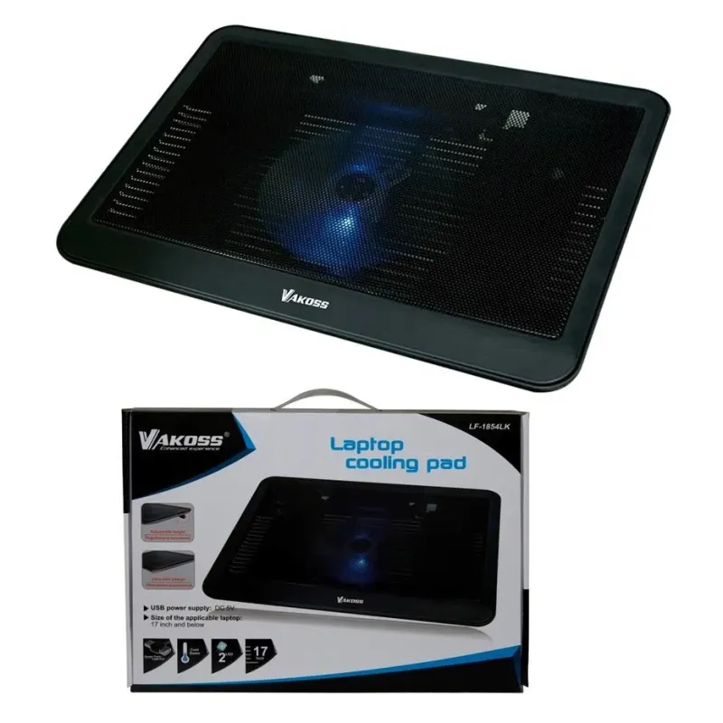 Podstawka chłodząca pod notebooka VAKOSS LF-1854LK 17" Podstawka chłodząca pod notebooka VAKOSS LF-1854LK 17" to podstawka pod laptopa. Zapewnia ergonomiczną pozycję ekranu i lepsze chłodzenie laptopa.