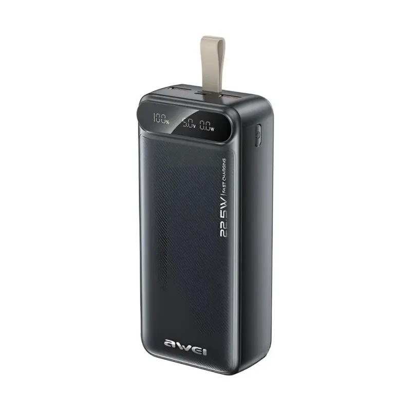 Powerbank Awei PA-12 30000mAh 22,5W 2xUSB-A 1xUSB-C 1xmicroUSB czarny to powerbank o pojemności 30000 mAh. Umożliwia ładowanie urządzeń mobilnych w podróży.