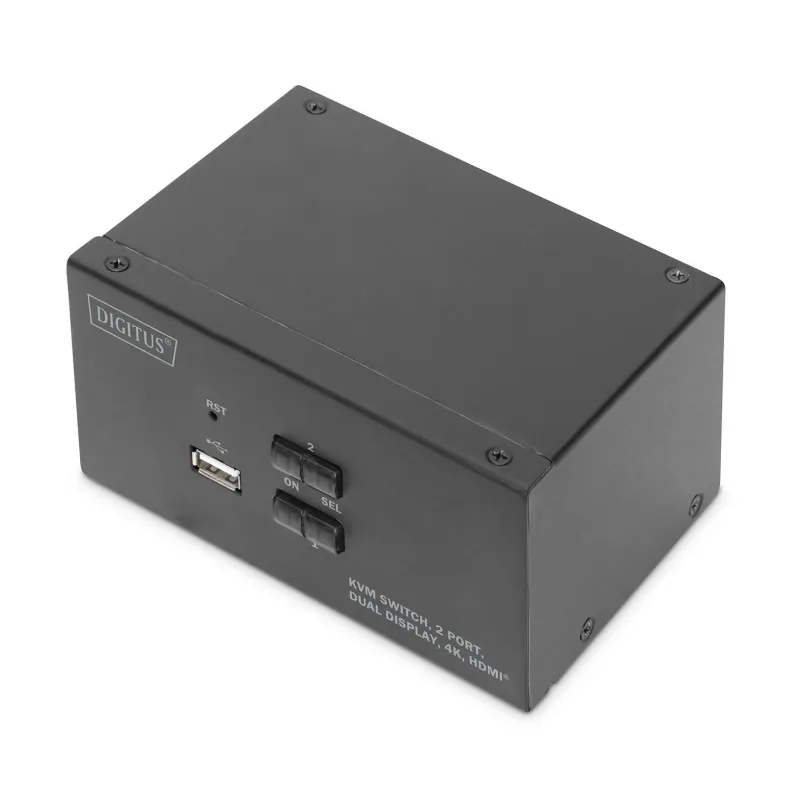Przełącznik KVM DIGITUS 2 portowy HDMI, Dual Display, 4K 30Hz