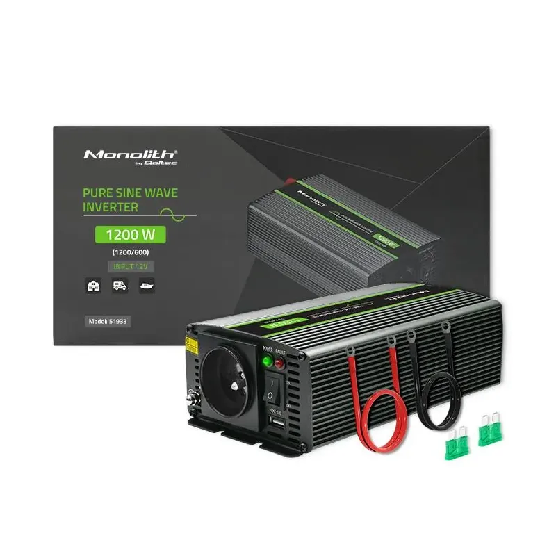 Przetwornica napięcia Qoltec Monolith | 600W | 1200W | 12V na 230V | Czysty to produkt.
