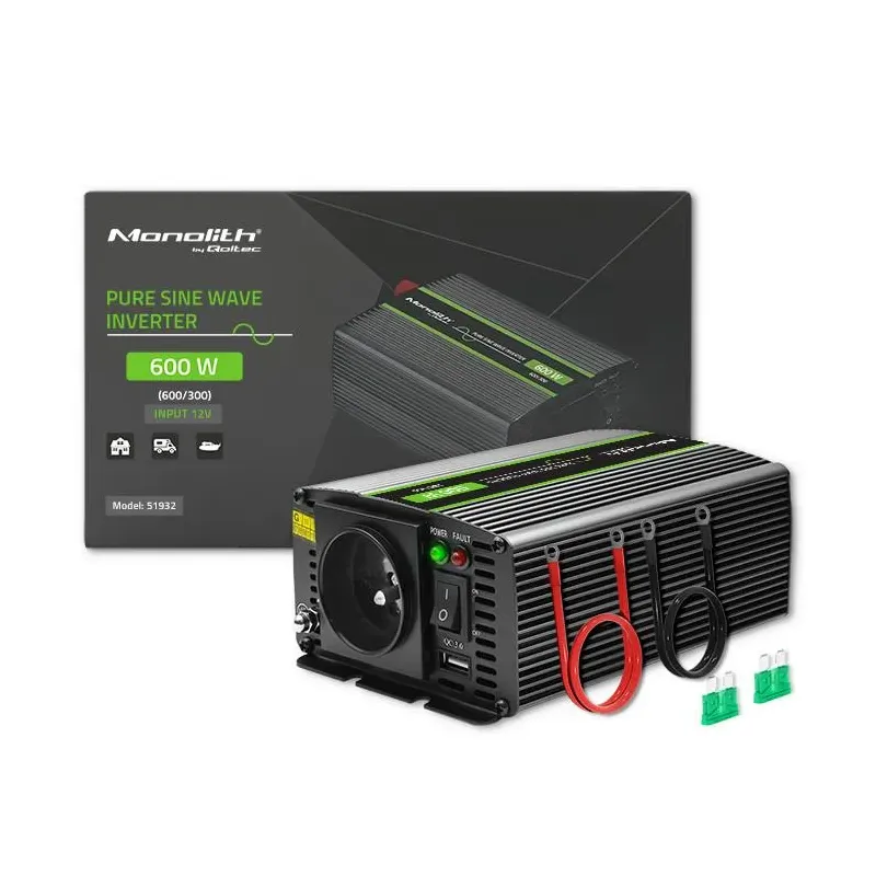 Przetwornica napięcia Qoltec Monolith | 300W | 600W | 12V na 230V | Czysty to produkt.