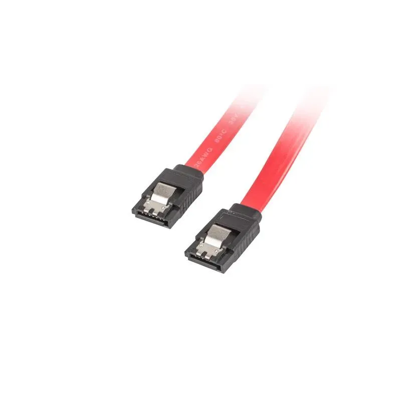 Kabel SATA Lanberg SATA-III DATA 0,5m metalowe zatrzaski Kabel SATA Lanberg SATA-III DATA 0,5m metalowe zatrzaski to kabel SATA o długości 0.50 m. Łączy dyski z płytą główną lub kontrolerem. SATA III (6 Gb/s).