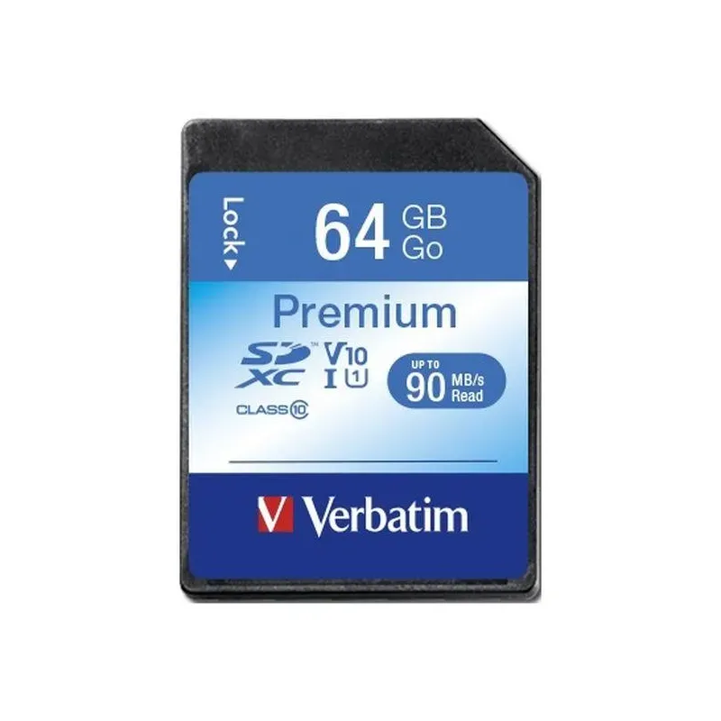Karta pamięci SDXC Verbatim Premium U1 64GB (90 MB/s) Class 10 UHS-1 V10 to karta pamięci SD o pojemności 64 GB. Rozszerza pamięć aparatów, kamer i urządzeń mobilnych.