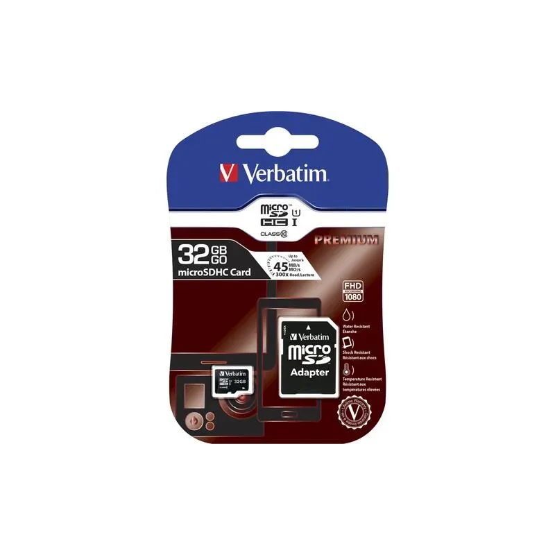 Karta pamięci MicroSDHC Verbatim 32GB Class 10 + adapter to karta pamięci SD o pojemności 32 GB. Rozszerza pamięć aparatów, kamer i urządzeń mobilnych.