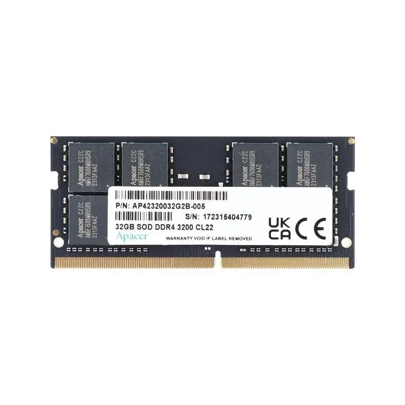 Pamięć SODIMM DDR4 Apacer 16GB (1x16GB) 3200MHz CL22 1,2V to pamięć RAM SO-DIMM o pojemności 16 GB, o taktowaniu 3200 MHz. Pamięć przeznaczona do laptopów i komputerów kompaktowych.