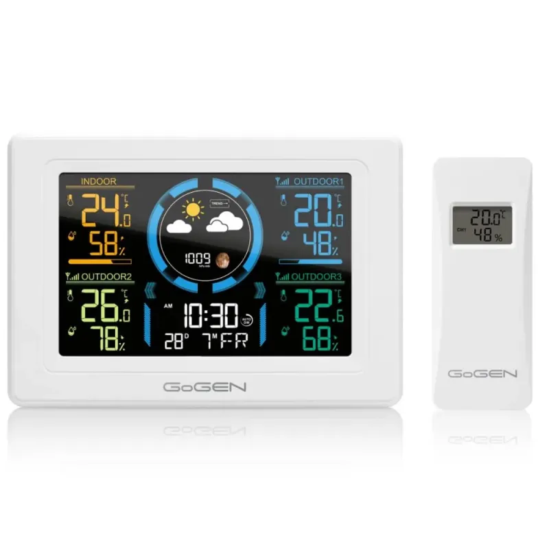 Stacja meteo Gogen – ME3397W to stacja pogodowa. Mierzy temperaturę, wilgotność i ciśnienie atmosferyczne.