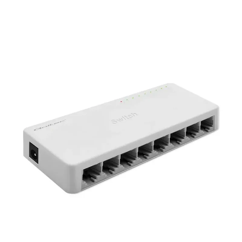 Switch niezarządzalny Qoltec przełącznik sieciowy 8 x port RJ45 | 1000Mbps to switch sieciowy. Umożliwia podłączenie wielu urządzeń do sieci lokalnej.