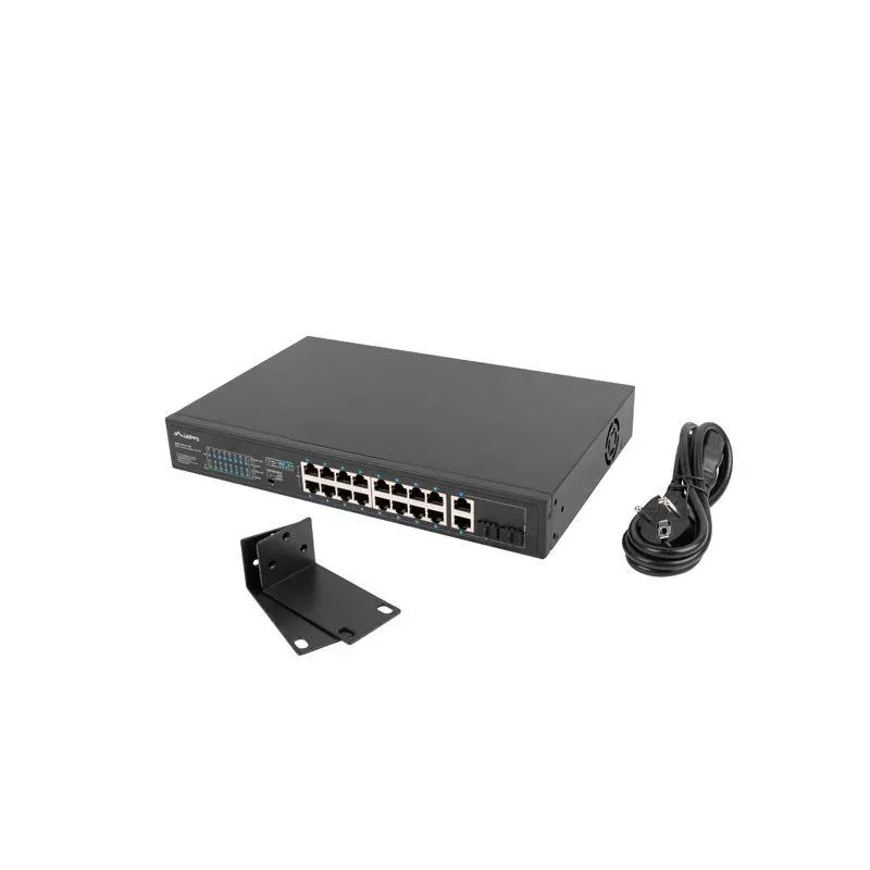 Switch niezarządzalny Lanberg 16x 100Mb PoE+/2x Combo Rack 19" Gigabit