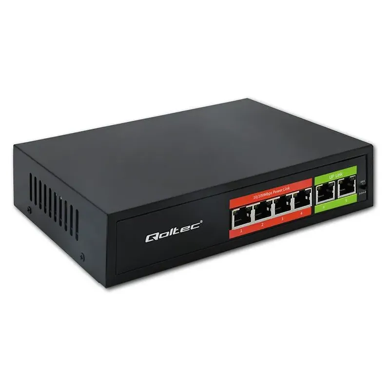 Switch niezarządzalny Qoltec przełącznik sieciowy Fast Ethernet PoE | 4x to switch sieciowy. Umożliwia podłączenie wielu urządzeń do sieci lokalnej.