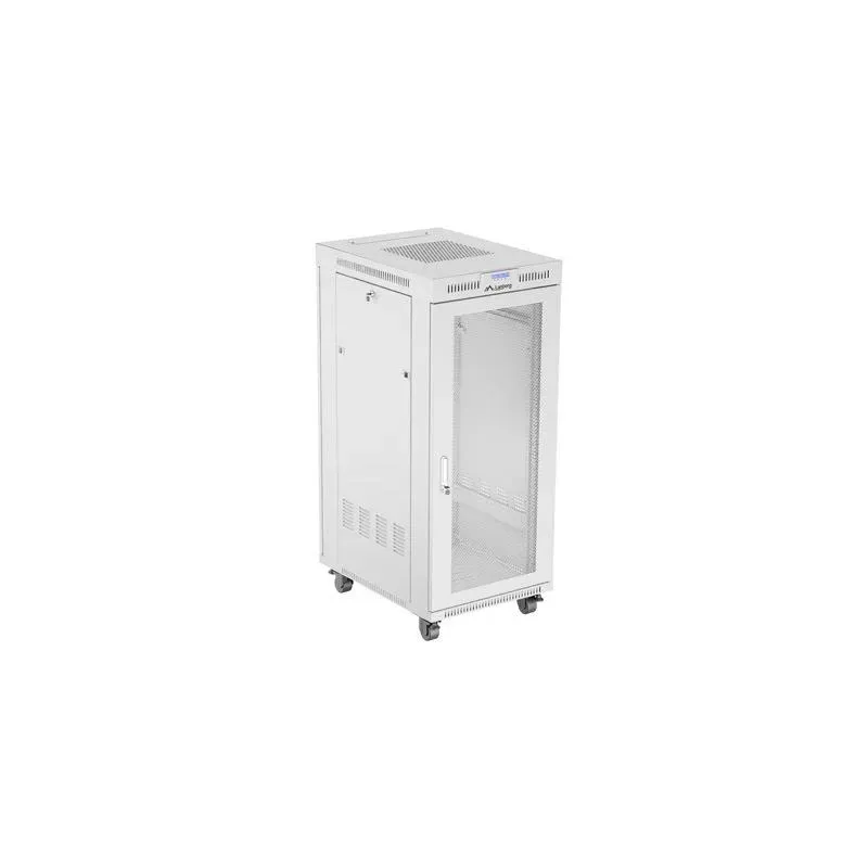 Szafa instalacyjna Rack stojąca 19" 27U 600x800 szara drzwi perforowane LCD to szafa serwerowa rack marki LANBERG. Zapewnia bezpieczne przechowywanie i organizację sprzętu sieciowego.