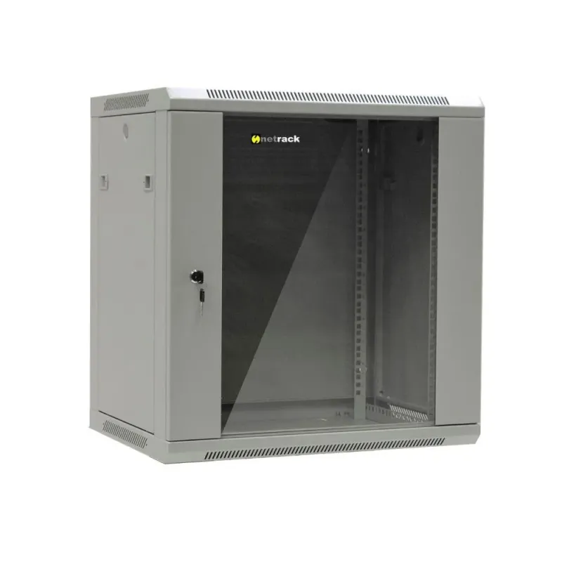Szafa wisząca 19" Netrack, 12U/600x450mm - szary, drzwi szklane, otwierane to szafa serwerowa rack. Zapewnia bezpieczne przechowywanie i organizację sprzętu sieciowego.