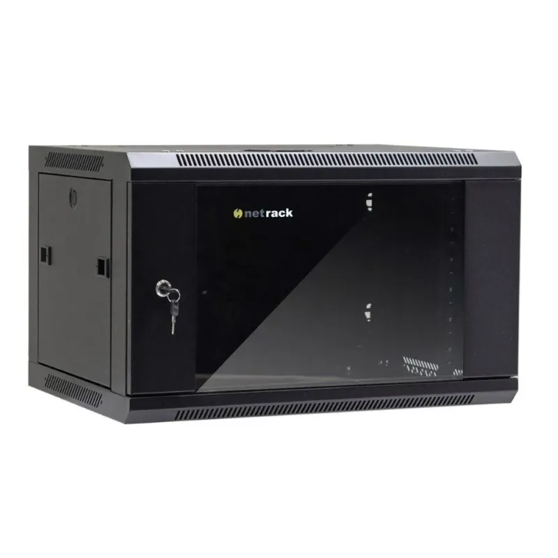 Szafa wisząca 19" Netrack, 6U/600x450mm – czarny, drzwi szklane, otwierane to szafa serwerowa rack. Zapewnia bezpieczne przechowywanie i organizację sprzętu sieciowego.