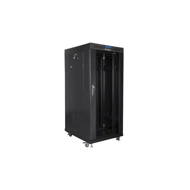 Szafa instalacyjna Rack stojąca 19" 27U 800x1000 czarna drzwi szklane LCD to szafa serwerowa rack marki LANBERG. Zapewnia bezpieczne przechowywanie i organizację sprzętu sieciowego.
