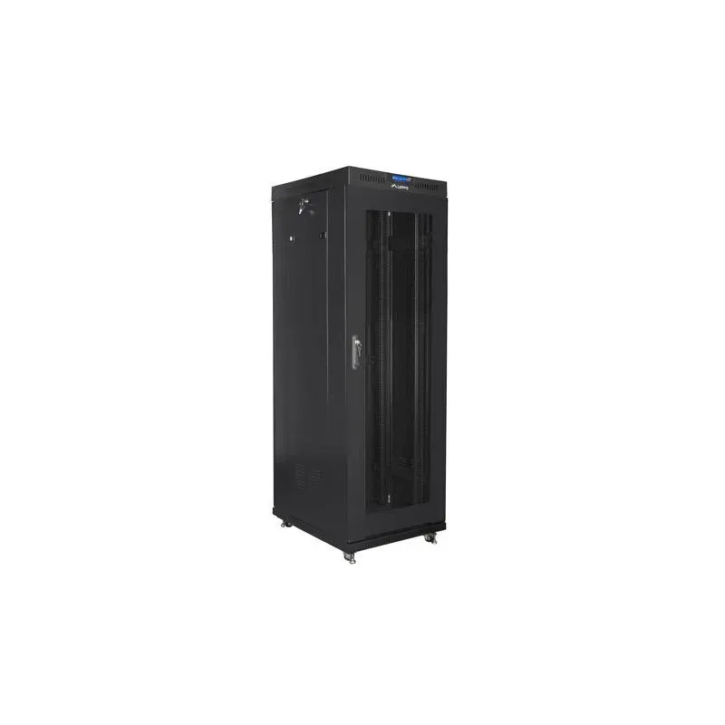 - Wymiary szafy (S x G x W): 600x800x1876 mm, - Wysokość (górny panel - dolny panel): 1797 mm, - Wysokość (górny panel - podłoże): 1870 mm, - Wysokość (górny panel - podłoże uwzględniając śruby): 1876 mm, - Wyświetlacz LCD: Tak, - Panel podłogowy: 4 kółka z hamulcem + regulowane nóżki, - Wewnętrzna szerokość rozstawu między szynami rackowymi: 450 mm, - Szerokość rozstawu między otworami szyn rackowych: 465 mm, - Zewnętrzna szerokość między szynami rackowymi: 500 mm - Ładowność: Do 800 KG - Klasa szczelności: IP20, - Panel wentylacyjny: w zestawie 4 wentylatory 230V w górnej obudowie, - Rodzaj drzwi: Przednie - Perforowane, Tylnie - Perforowane, - Zgodność ze standardami: ANSI/EIA RS-310D, IEC297-2, DIN41494; PART1 & PART7, ETSI, - Materiał wykonania: Wysokiej jakości stal walcowana, malowana proszkowo, - Grubość drzwi: 5.0 mm - Grubość blachy: pionowe szyny montażowe - 2,00 mm; profil montażowy - 2,00 mm; reszta - 1,50 mm - 1,20 mm, - Otwory kablowe: Góra, Dół (regulowane), - W zestawie: Akcesoria do mocowania, zamek drzwi przednich i tylnych, dwa zamki paneli bocznych, 20 śrub M6.